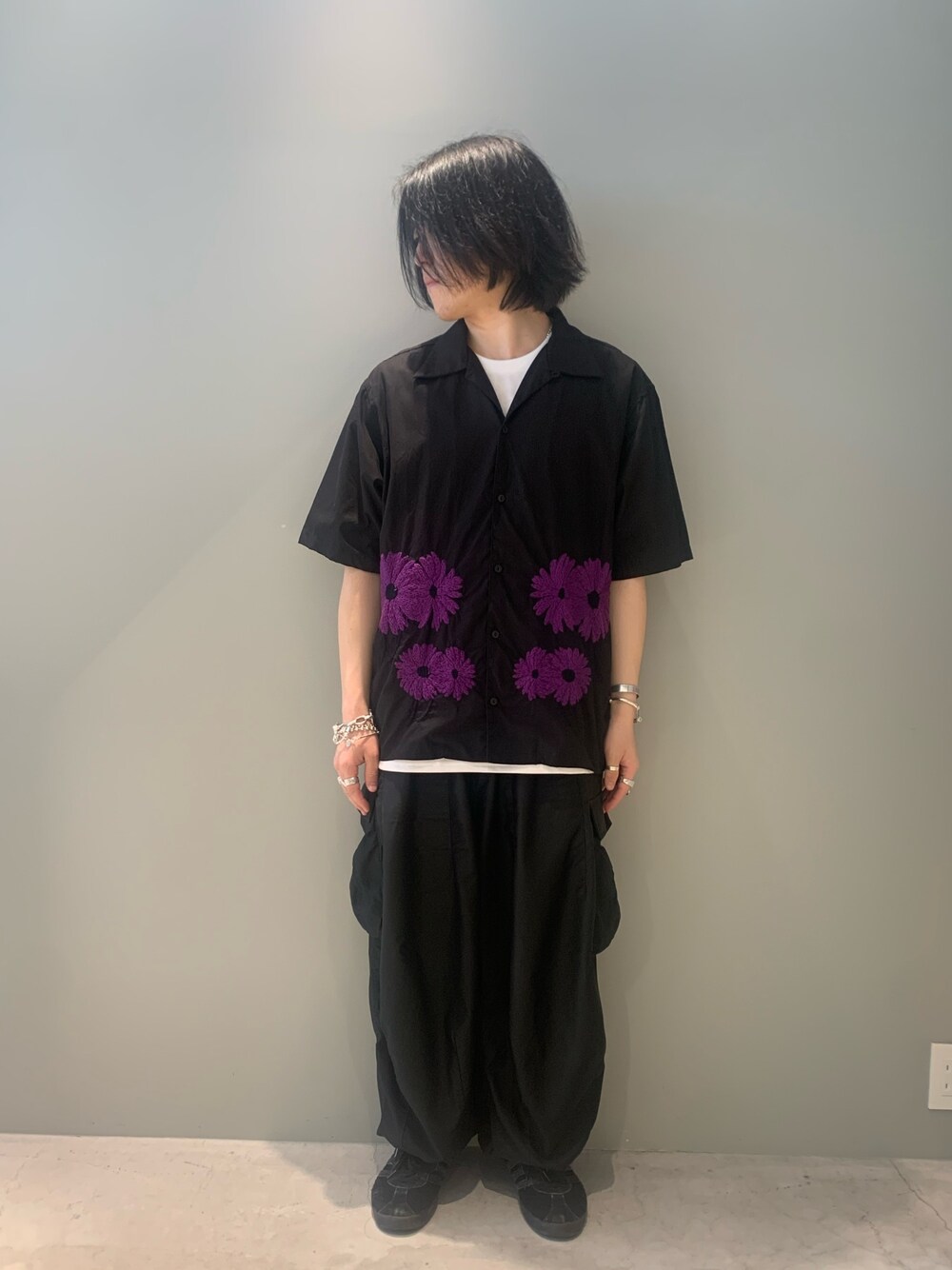 職人によって一つ一つ丁寧に刺繍で表現されたお花の刺繍が印象的な半袖シャツです。 目の詰まったコットン生地は、ドライタッチで夏場にも気持ちよく着用できます。 身幅を広く取ったシルエットなので、レイヤードにも適したサイズ感なので白Tをインナーに入れてみました。