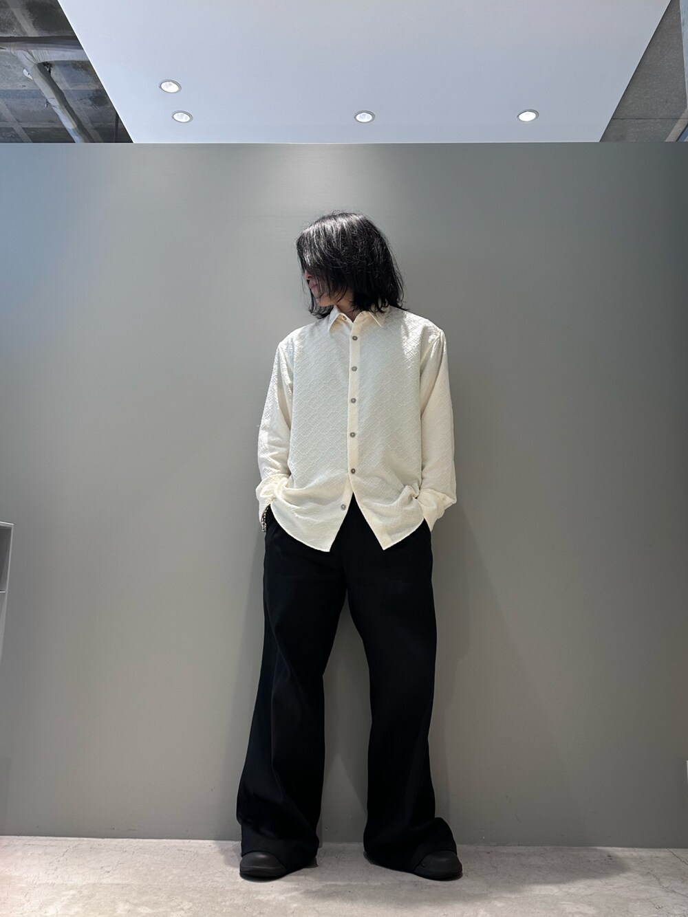 凹凸感のある刺繍風ジャカード柄が目を引くレギュラーカラーシャツです。 一枚でも羽織りでも使える万能シャツです。