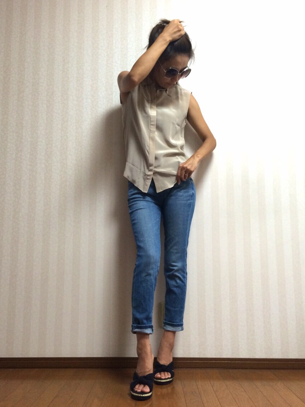 少し涼しくなって半袖が着れるようになったけど〜 まだ暑い♡ もっともっと夏が長くてもいいのに!! トップスはUNIQLOのシルク100%シャツ♡ サラッと大人な感じ♪