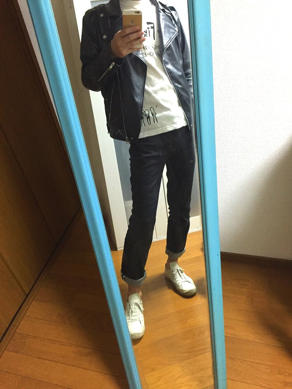 CHOMEL SINGAライダースジャケットとQ'ulleライブTシャツ(白)合わせてみた。