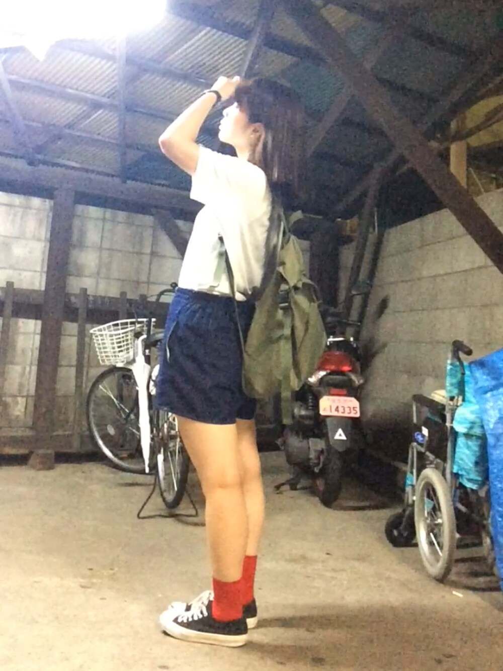 お姉ちゃんのリュックをかりて、新しい靴下をはいてルンルンな日。 好きなものってやっぱり楽しい 乁( ˙ω˙ 乁)