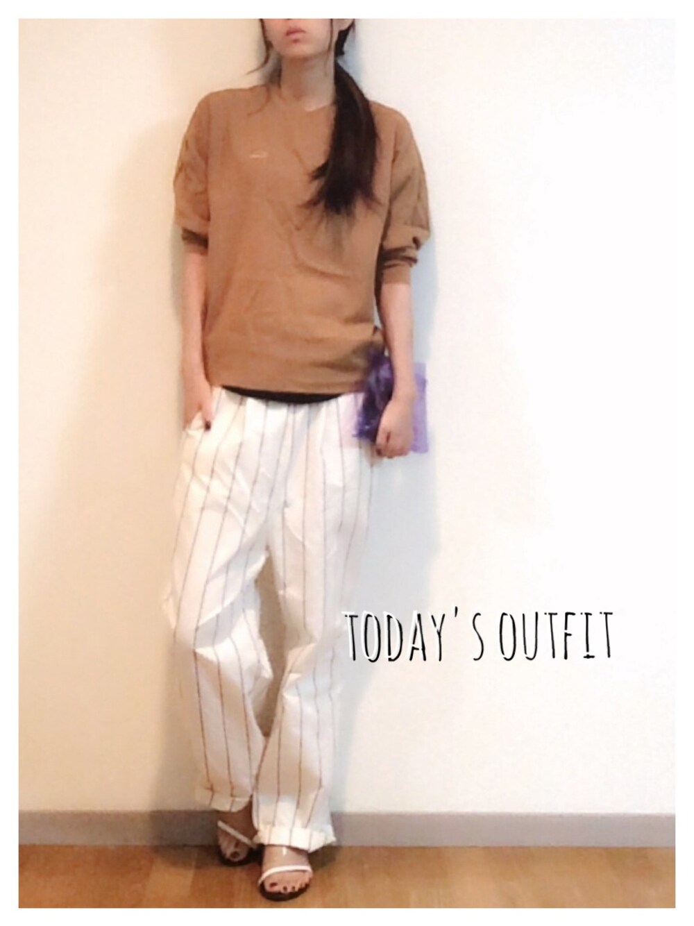 manaのその他パンツ「So ストライプパンツ」を使ったコーディネート