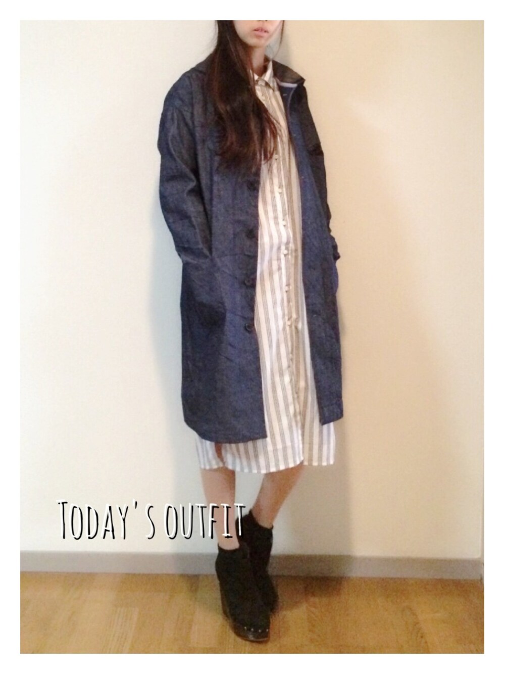 ストライプのロングシャツワンピにデニムのフードコートのスタイリング♪ 足元はショートブーツでモードに☻ Outer :So OP : So Soの商品は全てオーダーしていただけます。 サイズや素材の変更も可能ですので お気軽にお問い合わせください♡ HPもよかったら見てくださいね♪ HP :http://so-fdw.jp/