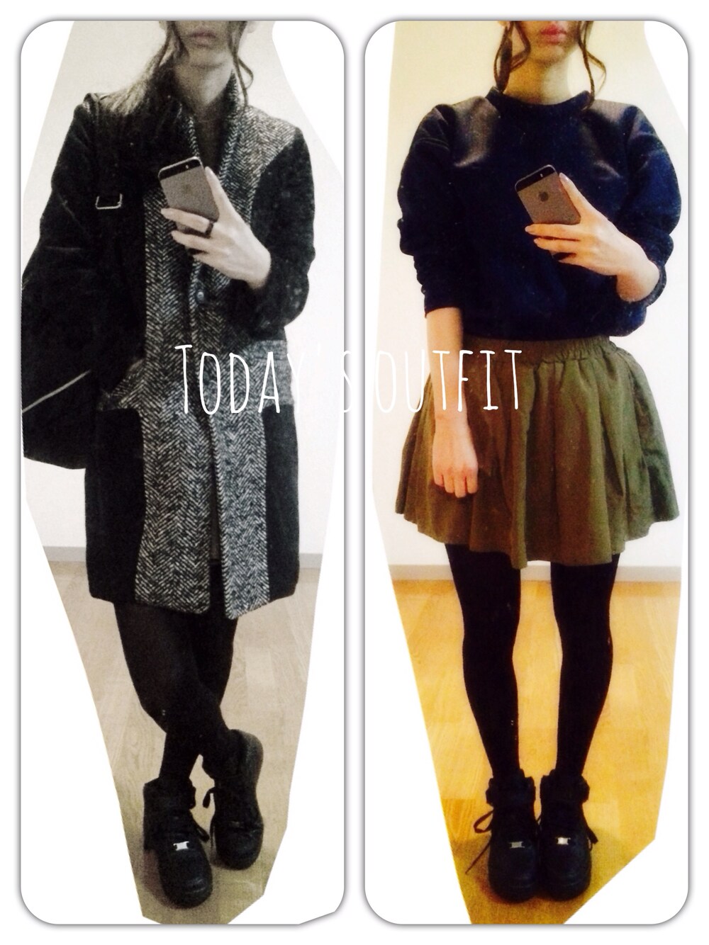 スエットにタフタのスカパンを合わせてガーリーなスポーティスタイル* かっちりしたチェスターコートにスニーカー、リュックのスタイルがすき。 Tops: So (hand made) Skirt: LEONIAS