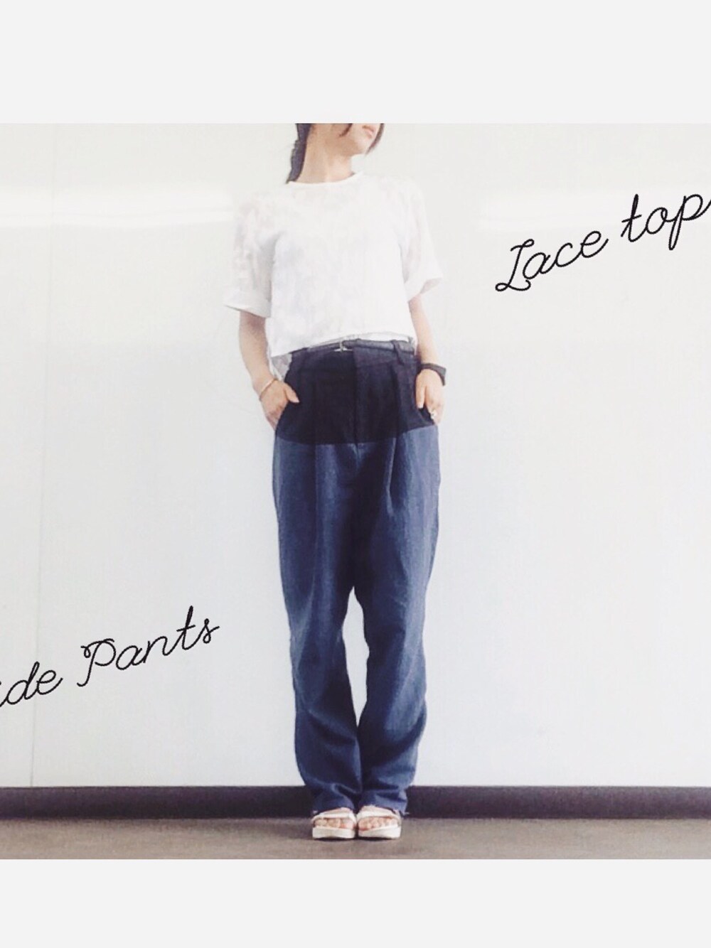 manaのその他パンツ「バイカラーワイドパンツ♪ ゆったりラインのワイドパンツです☻ 」を使ったコーディネート