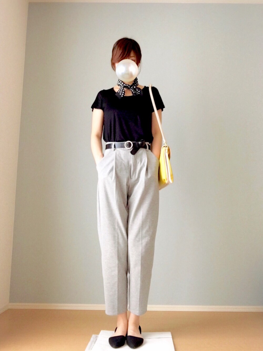 初めまして😊 よろしくお願いいたします。 Forever21のスカーフ ¥99 H&MのTシャツ3枚で¥1000とかだったような… GUのハイウエストテーパードパンツ ¥990 OLD NAVYのぺたんこパンプス ¥1200 差し色にイエローのバッグですがこれは雑貨屋さんで購入した¥3000くらいのものです。