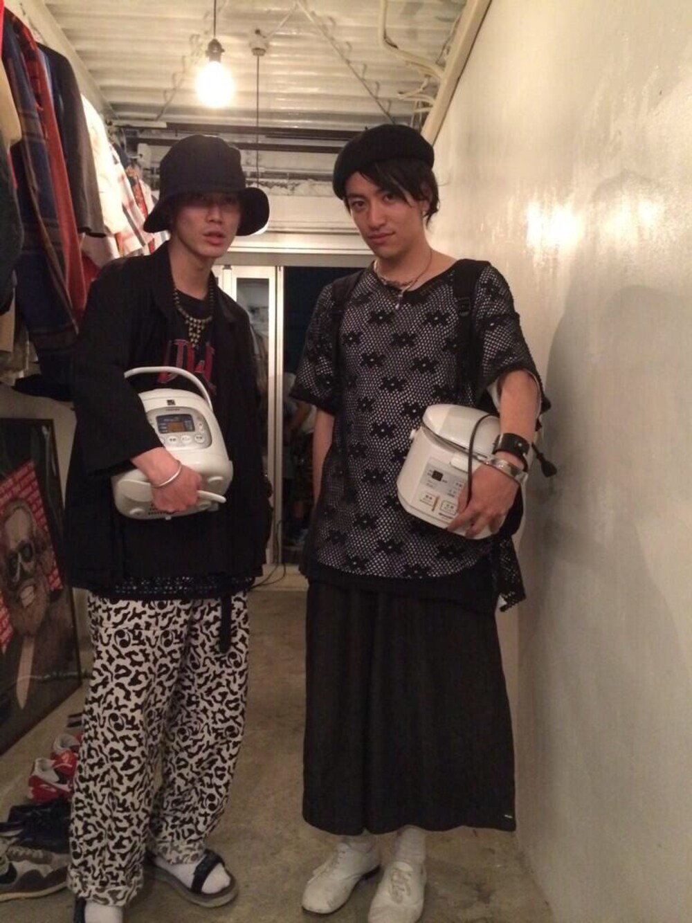 ワダ氏のクラッチバッグ「炊飯ジャー」を使ったコーディネート