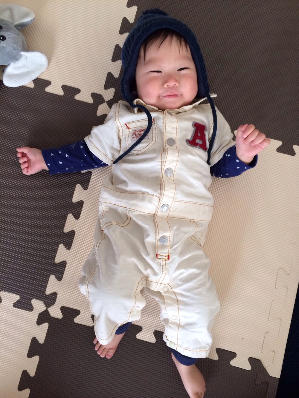 今日突然、口をブルブル言わせ始めました‼︎でもまだまだ上手くいかないみたいでよだれが出てるだけに😅写真は得意気にブルブル言っている顔です(笑) つなぎは出産祝いにいただいたもの❤️90cmですが着せちゃいました😁意外にいける💕やっぱり子どものつなぎは可愛いです😊 見てくださってありがとうございます♡