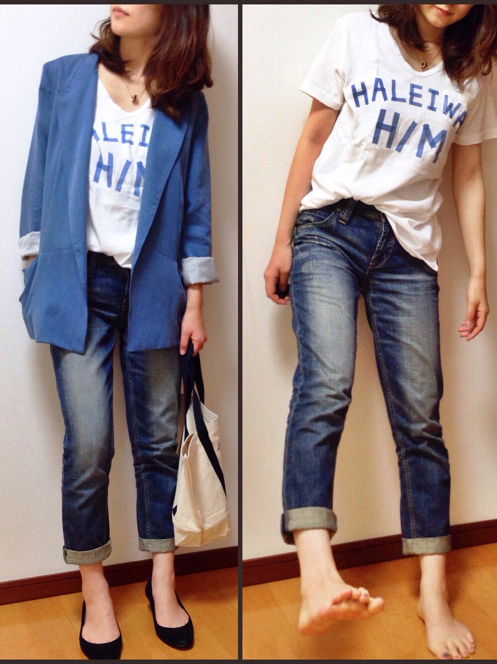 バッグ→BAILA付録 靴→ダイアナ Tシャツ✖️ジャケットが好き♡ 芝生の上で裸足になりたい季節です(^-^)/