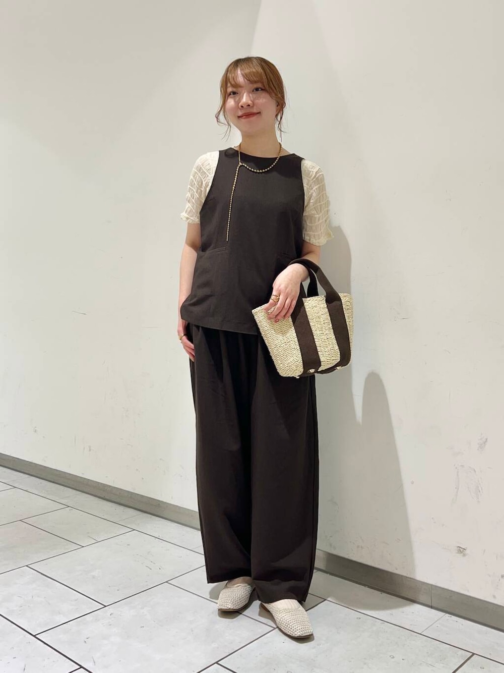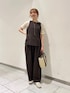 大人な雰囲気のセットアップです! 合わせて着るだけでオシャレになって、シンプルだけど高見えするデザインが可愛いです👜 ウエストもゴムで楽なのと、穿き心地も軽くて涼しいです🍃