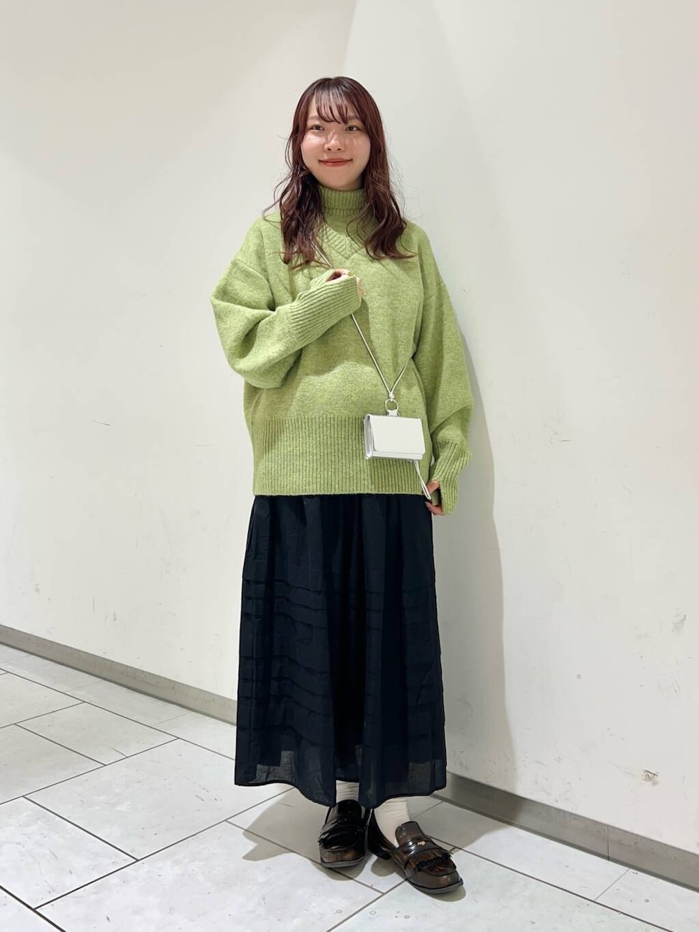 ニットはオーバーサイズですが、このゆるっと感が可愛いです💚✨️ スカートと合わせるとよりふわっとした印象になって冬らしいコーデになります⛄️ リバーシブルでもあるので、裏返した時のバイカラーの色味も雰囲気変わります! 色味も映えるので明るめに着ていただけます♩