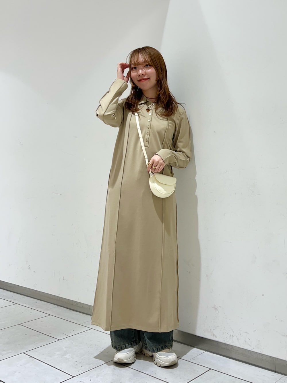 カジュアルなカットワンピースです✨️ 生地感しっかりしてるので、冬でも着ていただけます!❄️ 丈感長めですが、パンツを重ねてチラ見せしてレイヤードするとオシャレに♪
