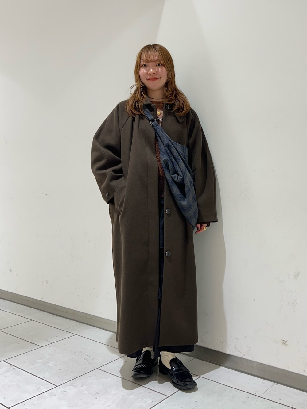 soraka(KBF 広島パルコ)のステンカラーコート「ステンカラーコクーンロングコート」を使ったコーディネート