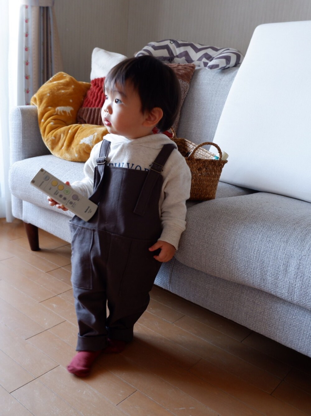 夜な夜な作ってやっと完成したオーバーオール😪グレーとブラウンの間の色なんだけど意外に中に合わせる色が難しい…😳🔍