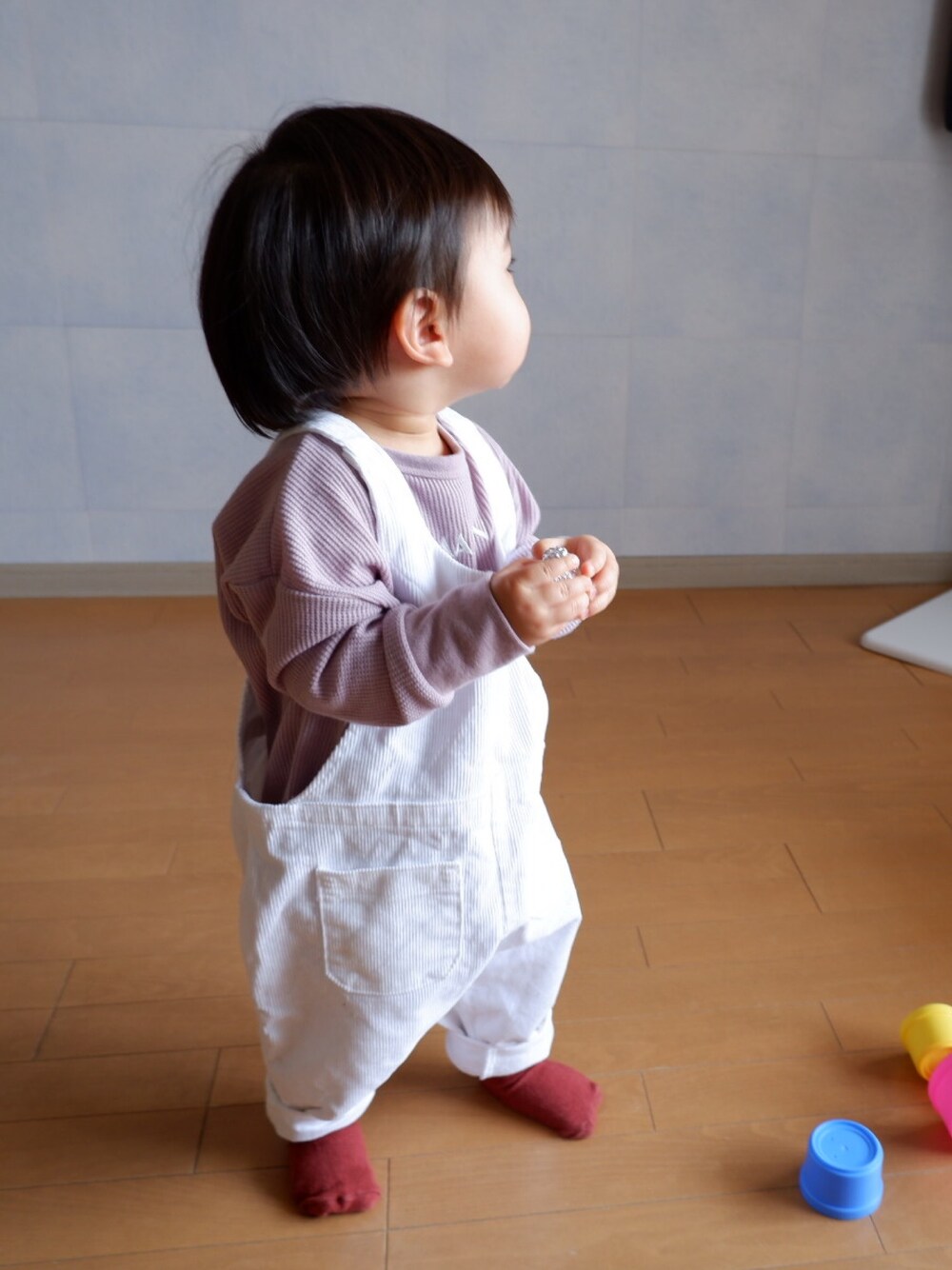 ハンドメイドオバオル春コーデになった方🍡🌸 後ろのボタンとおしりらへんのゆったりシルエットがすき☺️