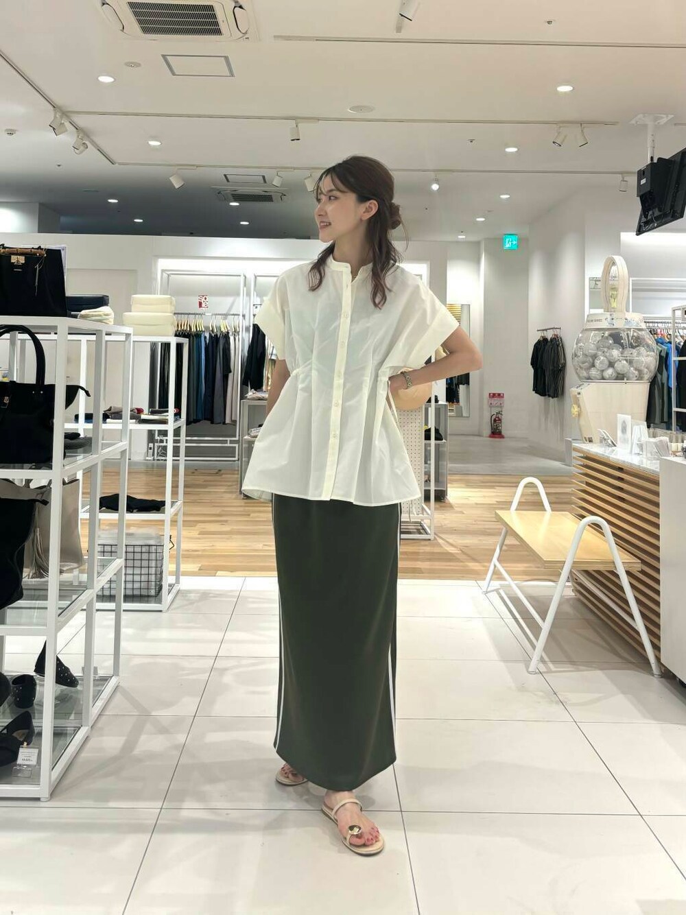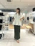 rina(SENSE OF PLACE 高崎オーパ)のシャツ/ブラウス「ウエストシャーリングペプラムブラウス」を使ったコーディネート
