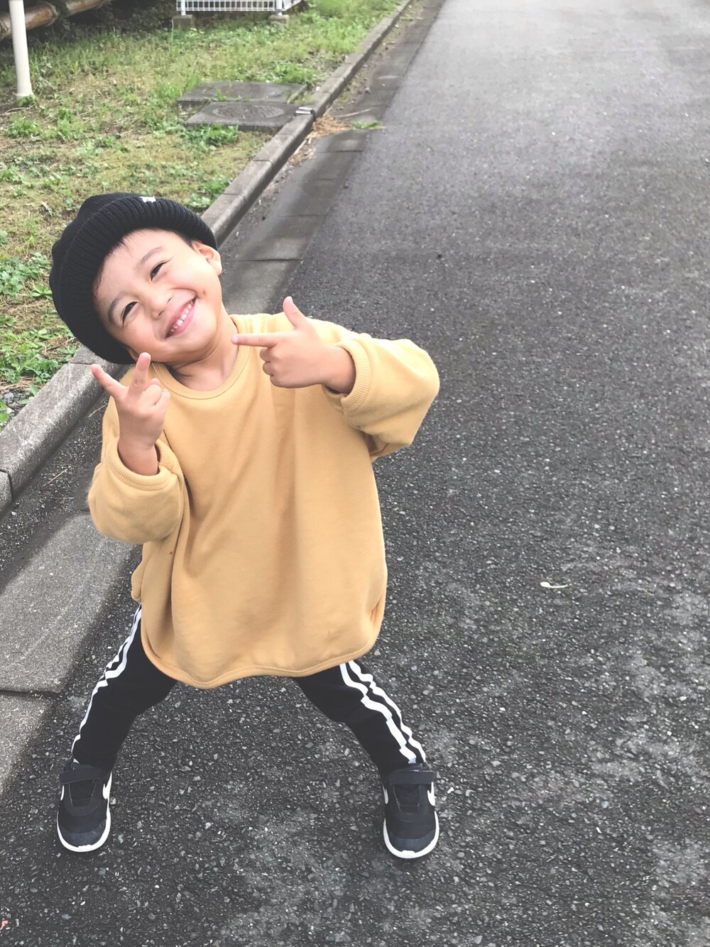 気温が 下がってきて やっと 着れた♡ 色味が きゃわわ𓂃なとっぷす。 めっちゃ笑顔𓂃 なにより 元気が いちばん💪