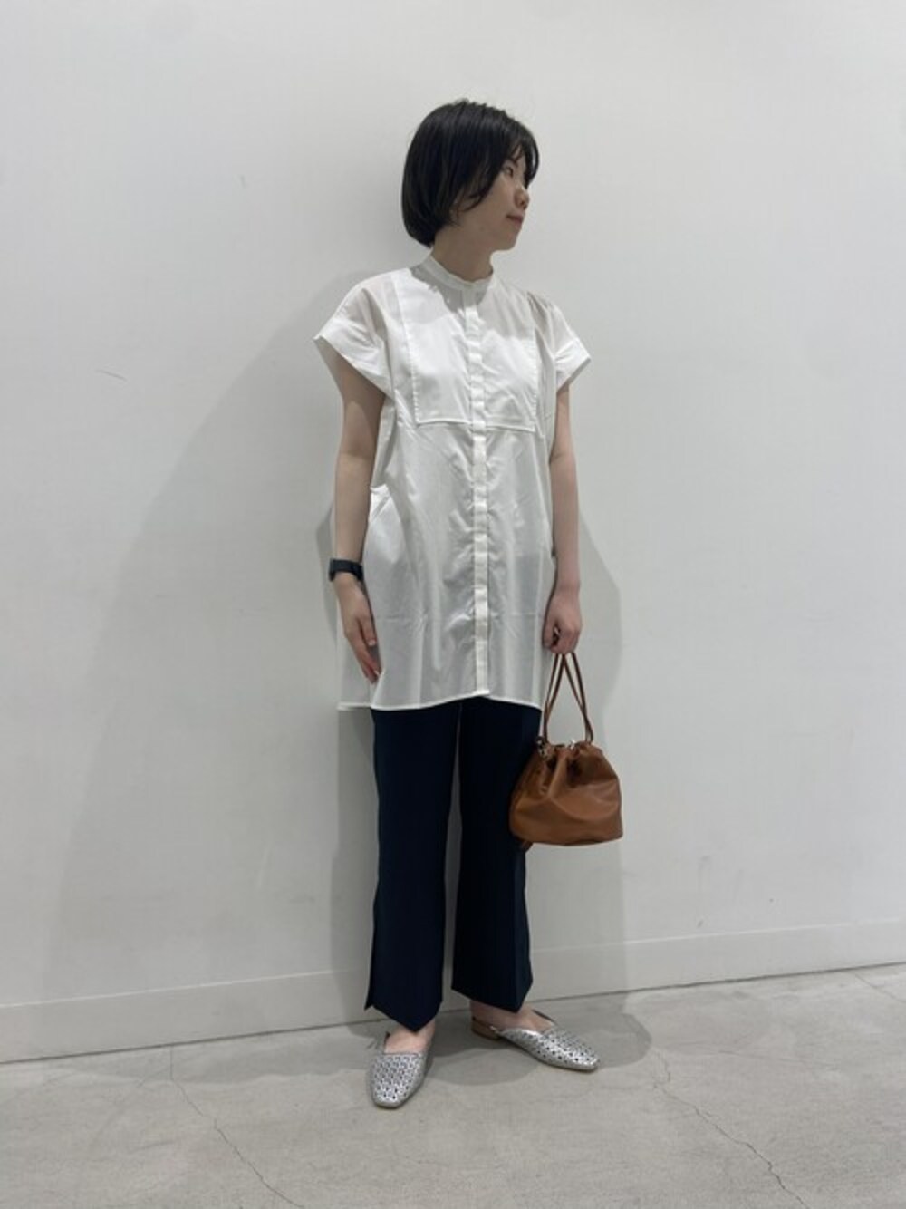 MOMOKAのシャツ/ブラウス「フレンチスリーブチュニックドレスシャツ」を使ったコーディネート