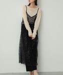 着用コーデ:68件閲覧いただき、ありがとうございます😊 スパンコールのキャミワンピはレイヤードスタイルがおすすめです!! まだ暑いのでタンクトップや半袖と合わせても◎
