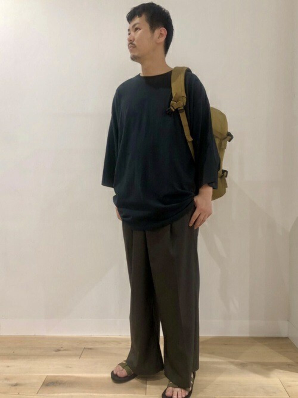 SENSE OF PLACE ONLINE STOREのTシャツ/カットソー「エクストラルーズTシャツ(5分袖)」を使ったコーディネート