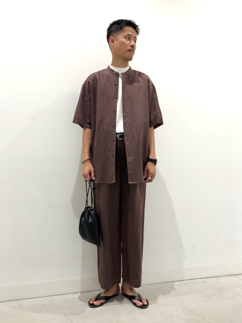 たろーのシャツ/ブラウス「『XLサイズあり』リネンレーヨンバンドカラーシャツ」を使ったコーディネート