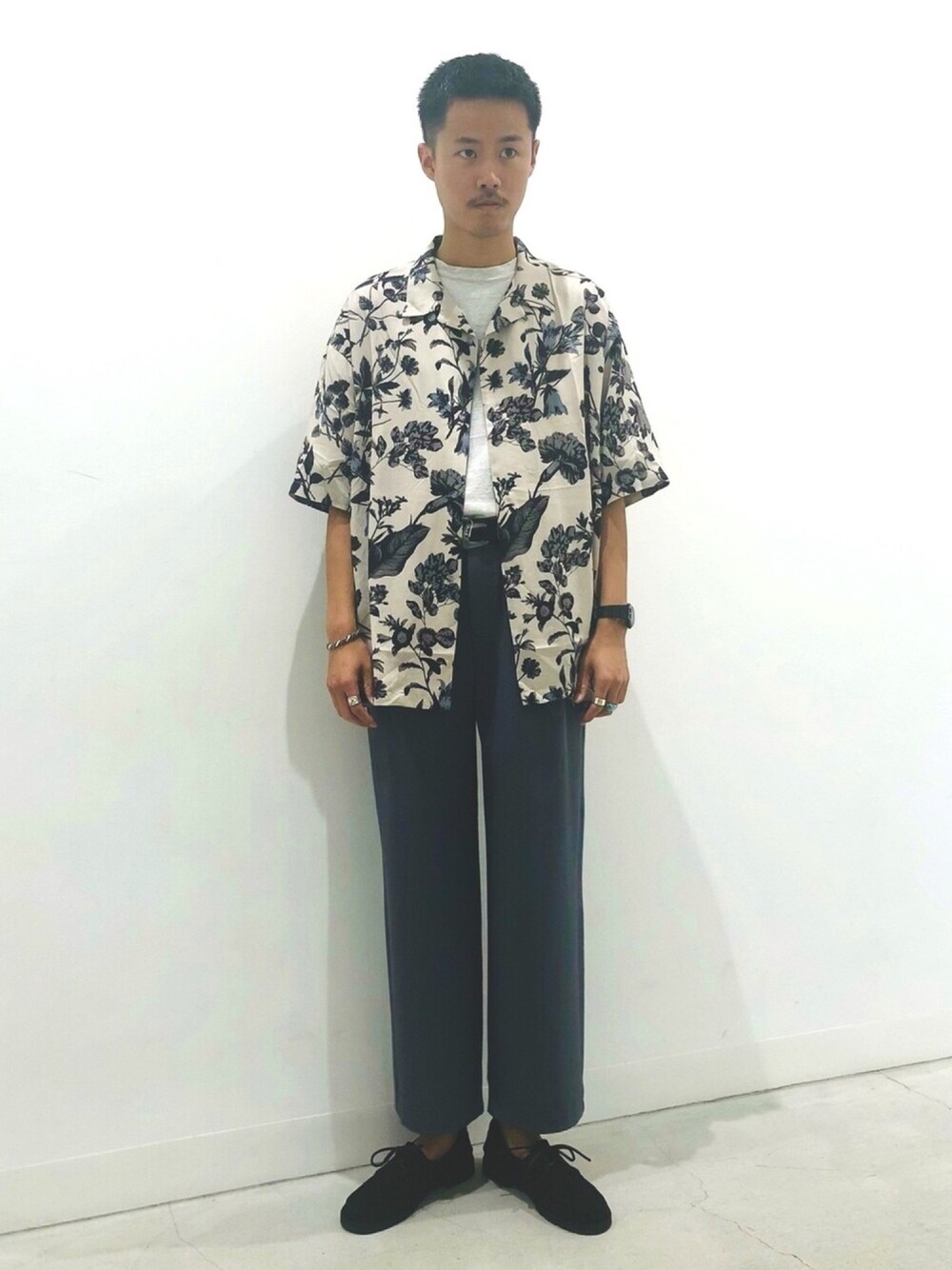 たろーのシャツ/ブラウス「ボタニカルオープンカラーシャツ(5分袖)」を使ったコーディネート
