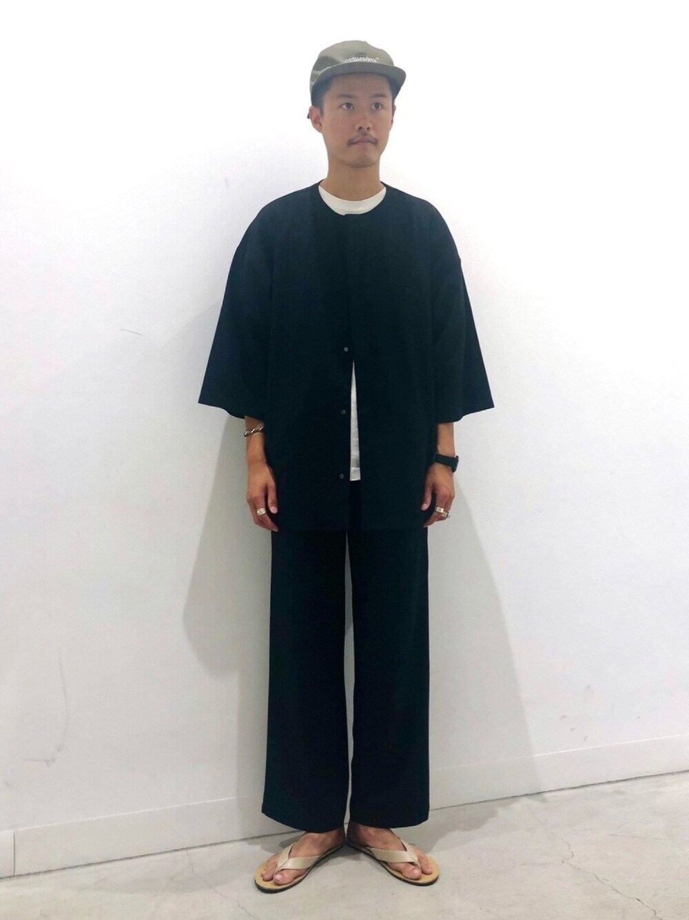 たろーのシャツ/ブラウス「ノーカラールーズシャツ(5分袖)」を使ったコーディネート