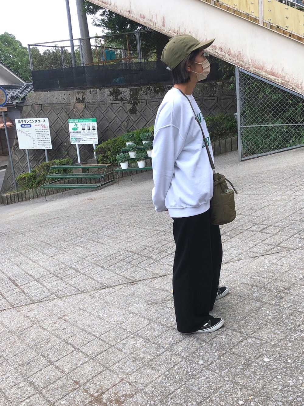 shichanのスウェット「GILDAN カレッジロゴ オーバーサイズ プリント スウェット トレーナー」を使ったコーディネート