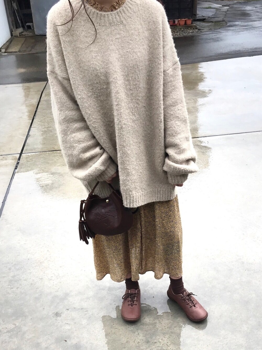 soraのニット/セーター「ビッグシルエットボリュームスリーブニットトップス」を使ったコーディネート