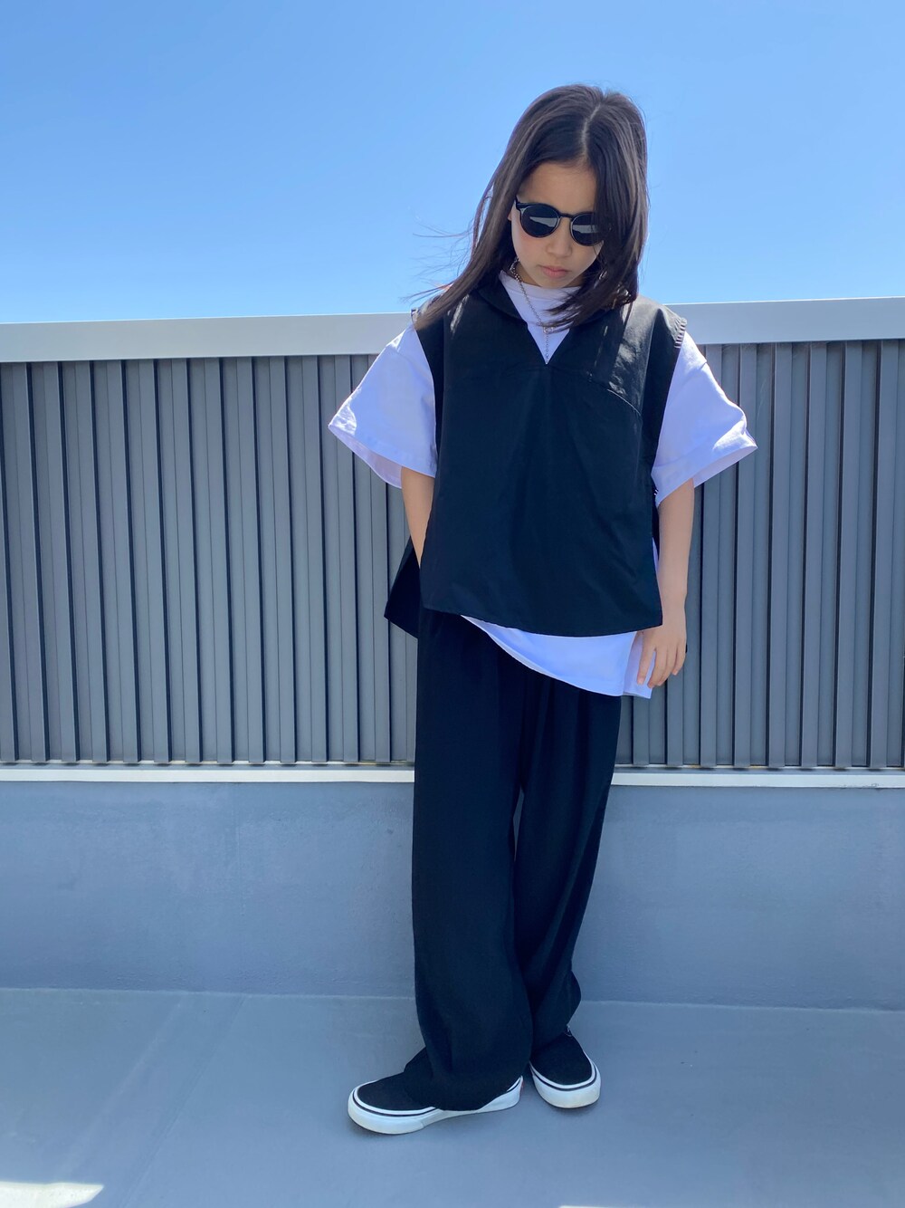 SORAのスリッポン「キッズ VANS ヴァンズ SLIP ON スリッポン V98CK (19-22) BLACK」を使ったコーディネート