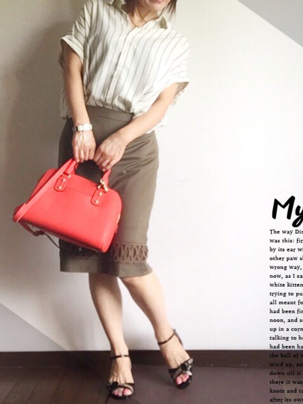 おはようございます☀ 近畿は梅雨明けらしいですねぇ 昨日は一人で梅田ぶらぶら〜 まだまだバーゲンをしてたので、見るだけって思ってたのに、買ってしまいました💧物欲止まらないです(´д`) ストライプのスキッパーシャツとカーキーのタイトスカート。シンプルコーデにオレンジのバッグ👜でアクセントつけました😄 いつもいいね👍、お気に入り😄、フォロー💕ありがとうございます とっても嬉しくて、嬉しくて♡更新の励みになります。