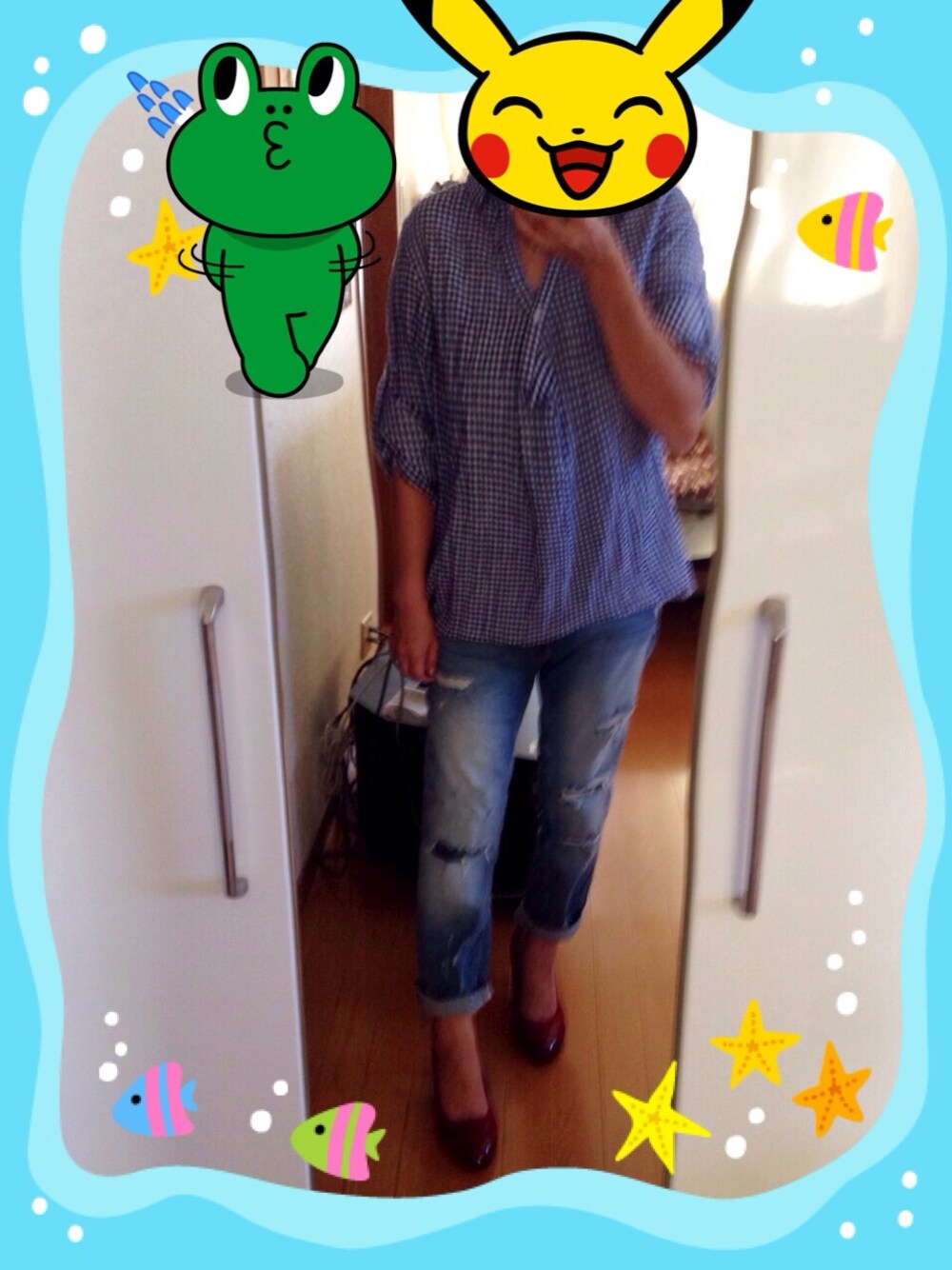 暑さがぶり返してる、、、 いきなりギンガムチェック f^_^;) トップス avv デニム ZARA パンプス 通販