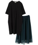 上下セットのお得なアイテム^_^ ゆったりシルエットなアイテムです。 トップスにサイドスリットが、 入っているので長めのデザインでも 重くなりません!! そして、ボトムが柔らか素材で とっても着心地がよいです☆