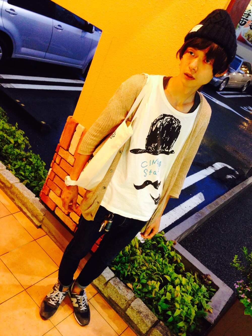 cinemastaffのTシャツにTESUSABIのトートバック 両方こないだのライブで買った☻ スキニーは基本全部ユニクロのレディースを愛用。 ユニクロじゃないとスキニー感がでない〜 182cmの55kgでアンガールズをもとうとう超えたよ〜