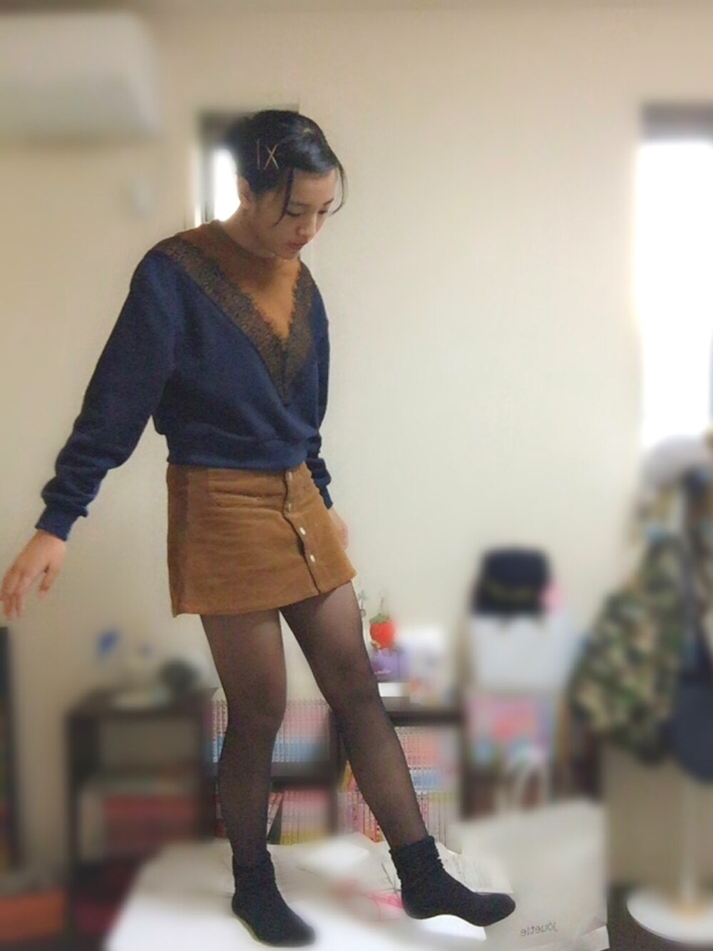 まおのスカート「コーデュロイ台形スカート」を使ったコーディネート