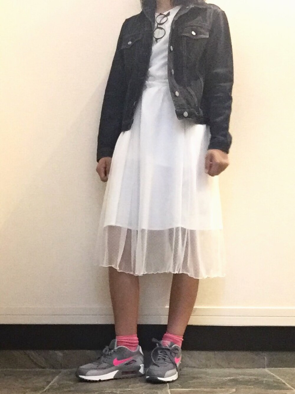 まおのスカート「ドットチュールレースミモレ丈スカート」を使ったコーディネート