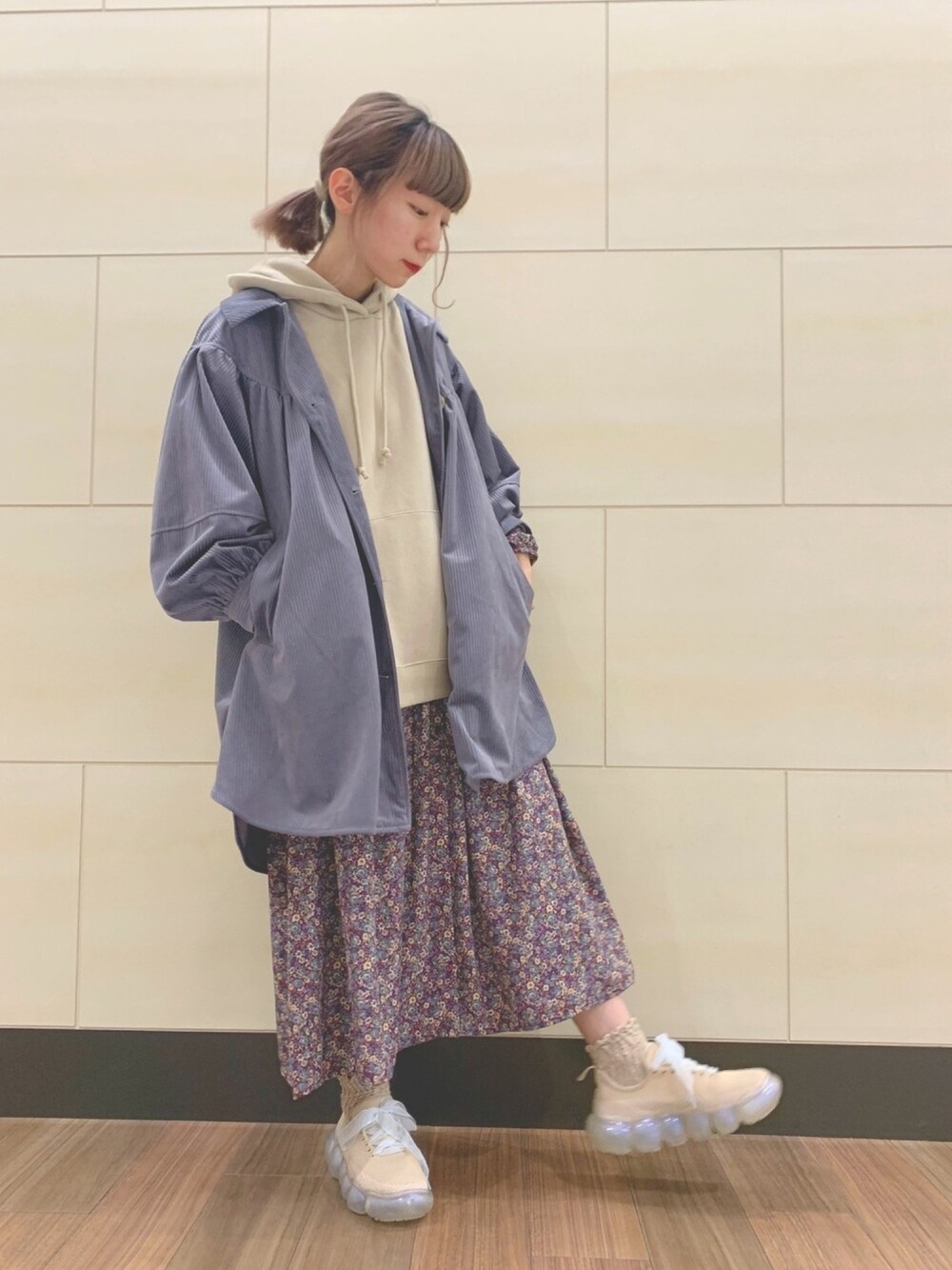 kaniのその他アウター「コーデュロイギャザーコート」を使ったコーディネート