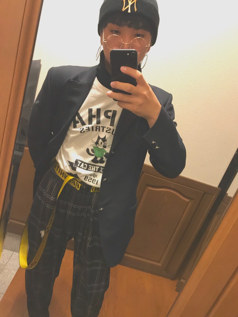 やっとテストが終わった。古着のトラックパンツが500円で、買ってみた。うまくあうアウターがなくて、結局制服を着てみた。🐍🐍 Instagram➡️@sora9_3_729