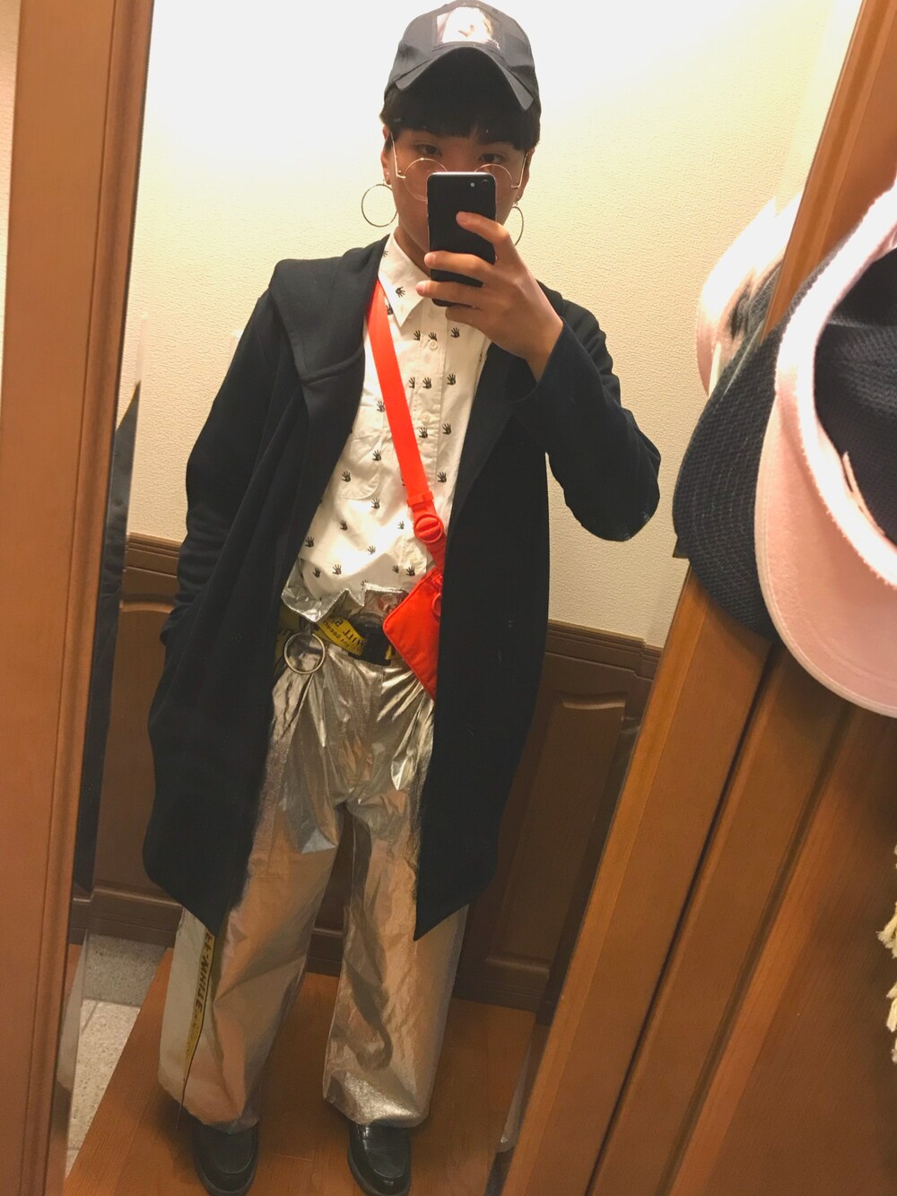 なんとなく銀パンツを履きたかった。コートの中にショルダーバッグがいいらしいからやってみた。銀パンツ=宇宙服🐍🐍 【良かったらInstagram、wearフォローよろしくお願いします🙇🙏】 Instagram➡️@sora9_3_729