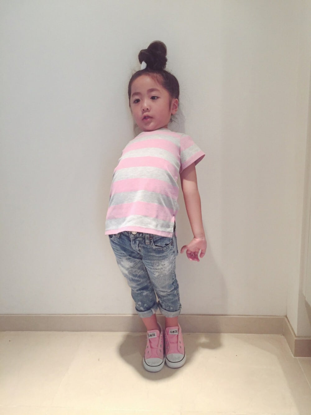 またまたTYPYさんです😂❤️ 娘さん、ピンク大好きです😁 ピンクとグレーの組み合わせは最強だと思います😘 今日のポーズは怖いです…手が…😱💦