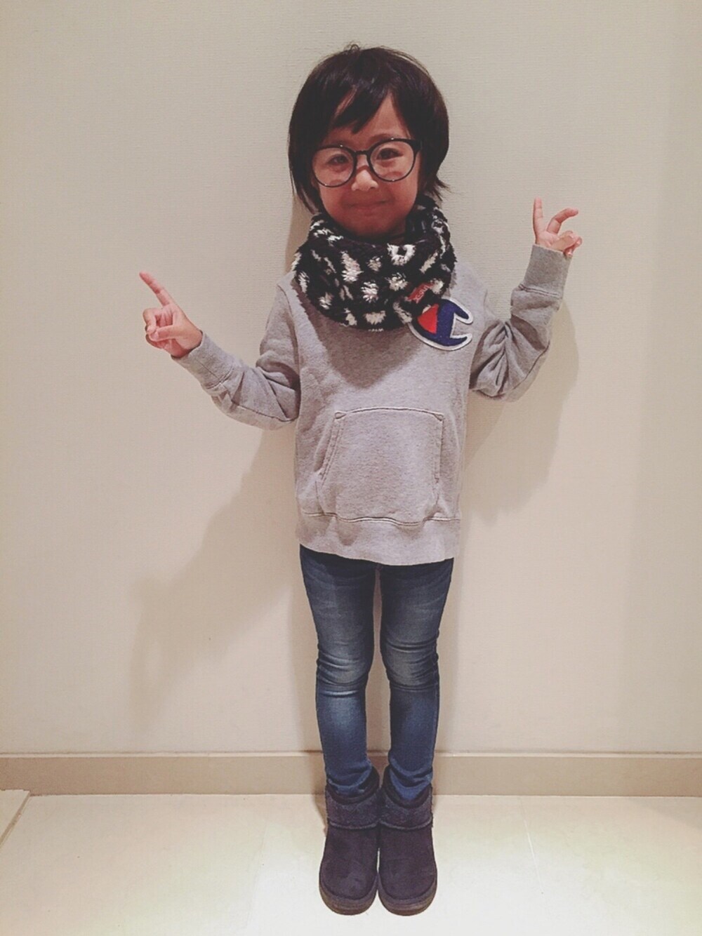 撮り溜め載せ忘れ😑 髪の毛切りたてやから2ヶ月前です🙈 昨日アップしたのと同じポージング😅 子どもの髪の毛って、伸びるの早いなぁ😳✨ 身長▷▶︎107cm スキニーsize▷▶︎90😂笑