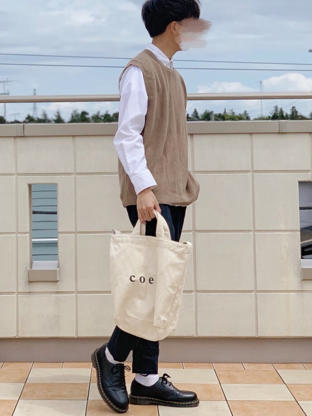今日のコーデ!! 春らしくトレンドのニットベストを使ってみました!! 白と茶色系で揃えて明るめに!! coen のバッグも相性が良かったので合わせてみました!