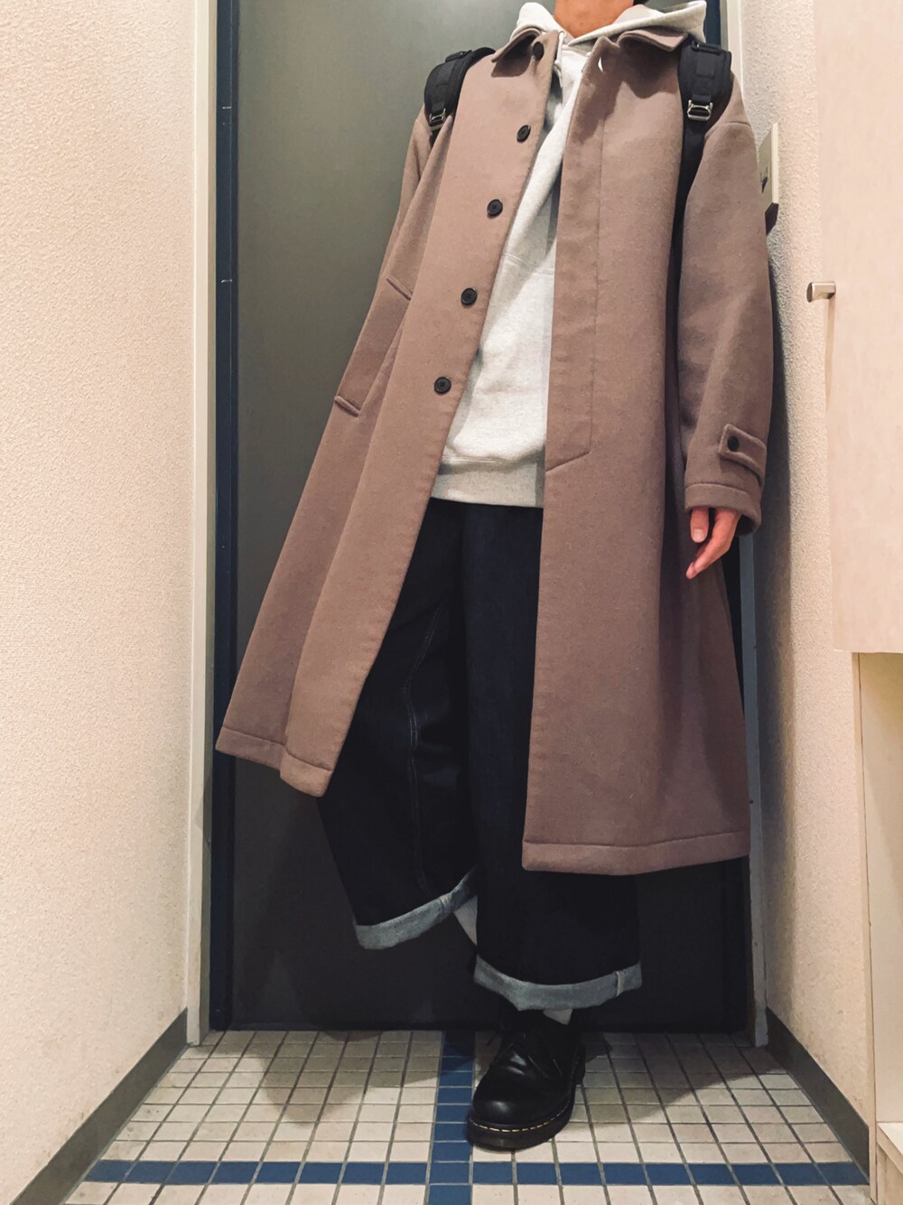 @soranoのステンカラーコート「ウールBIGステンカラーコート(HARE)」を使ったコーディネート