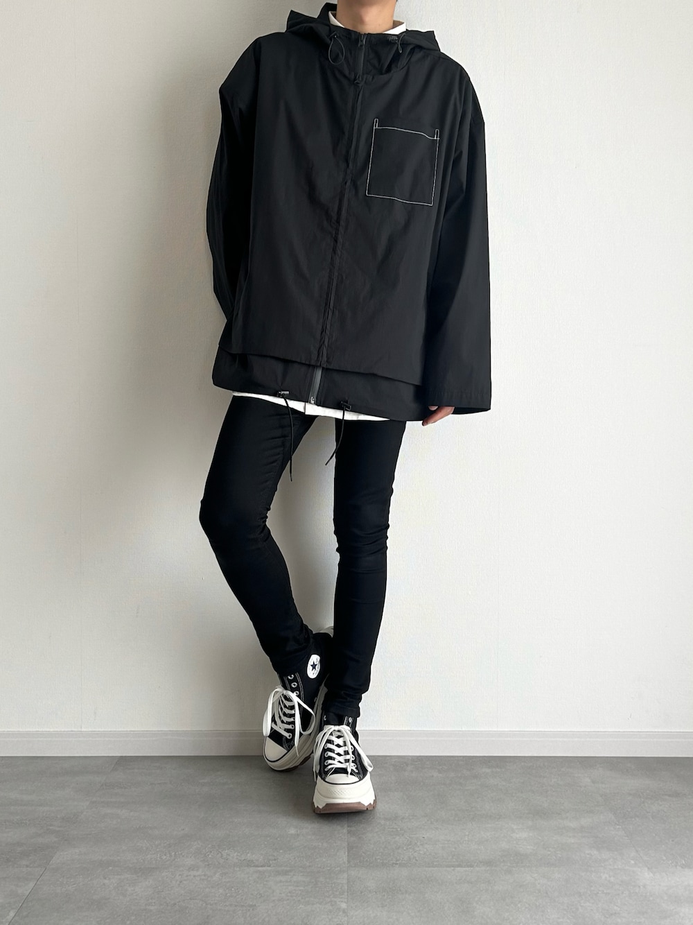 マウンテンパーカー×シャツ×黒スキニー いつもいいね、お気に入り 本当にありがとうございます outer:L tops:L pants:S [Instagram] sorano_wear