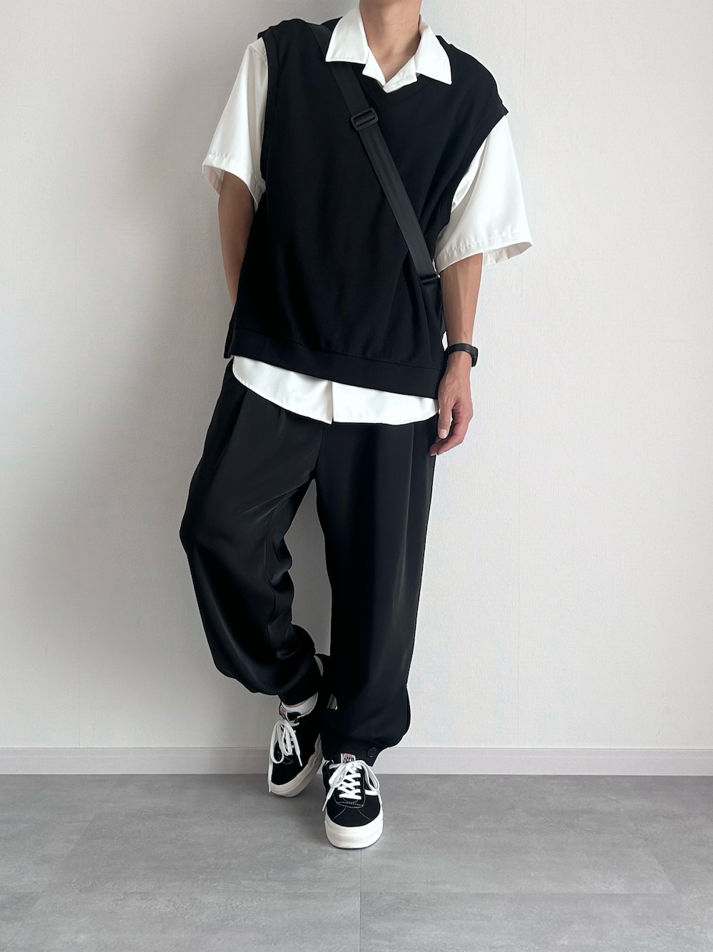 ニットベスト×シャツ×ジョガーパンツ いつもいいね、お気に入り 本当にありがとうございます knit:L shirt:M pants:M [Instagram] sorano_wear
