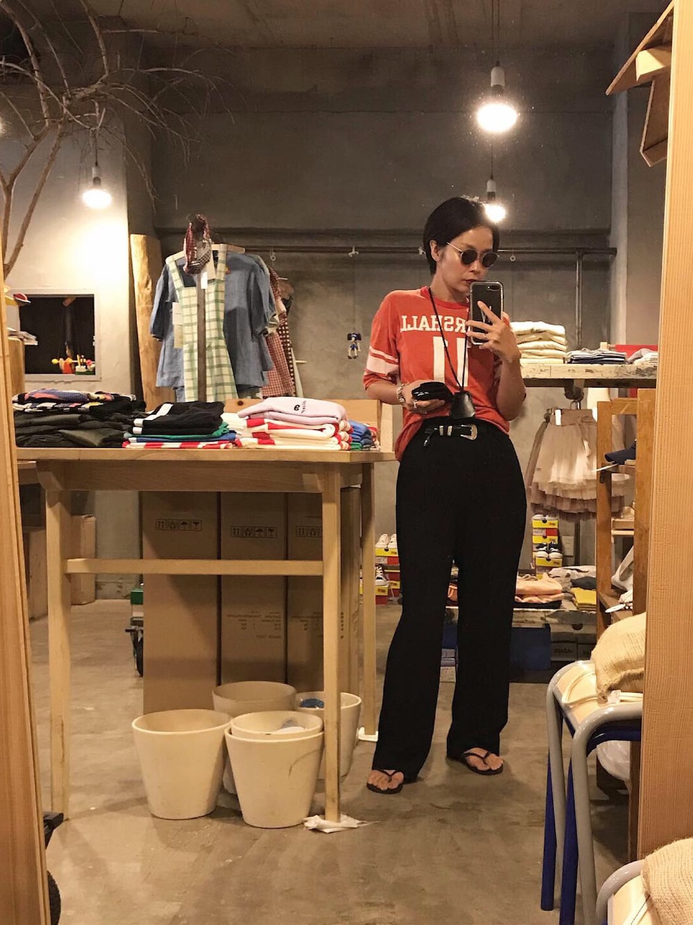 ブラック系のサンダルを着用したレディースの夏コーディネートの1枚目の写真