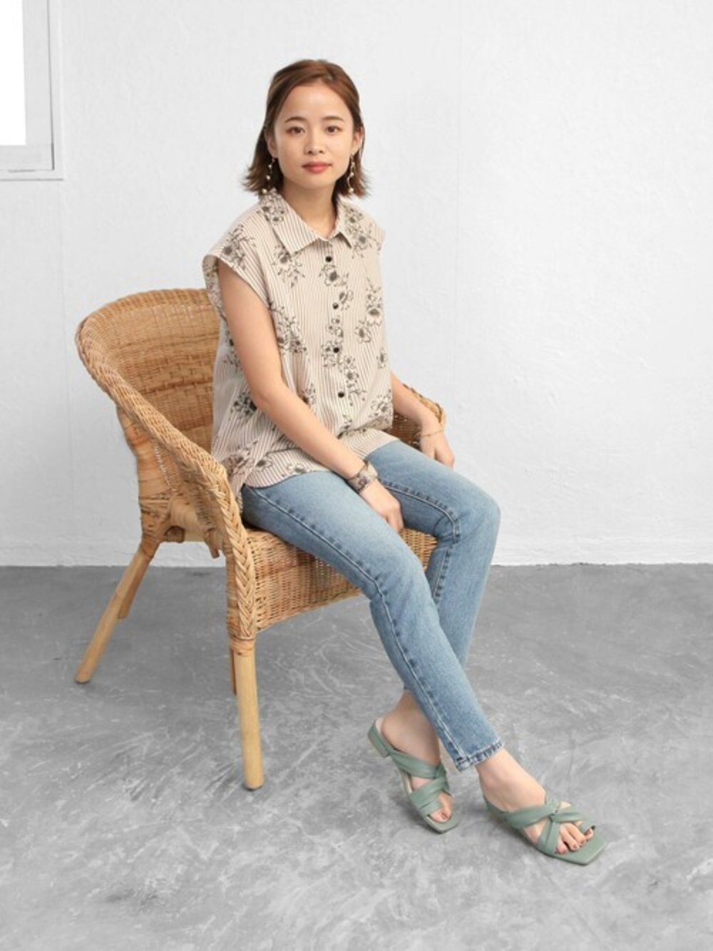 sr__aのサンダル「ソフトフェイクレザーのスクエアトゥトングサンダル」を使ったコーディネート