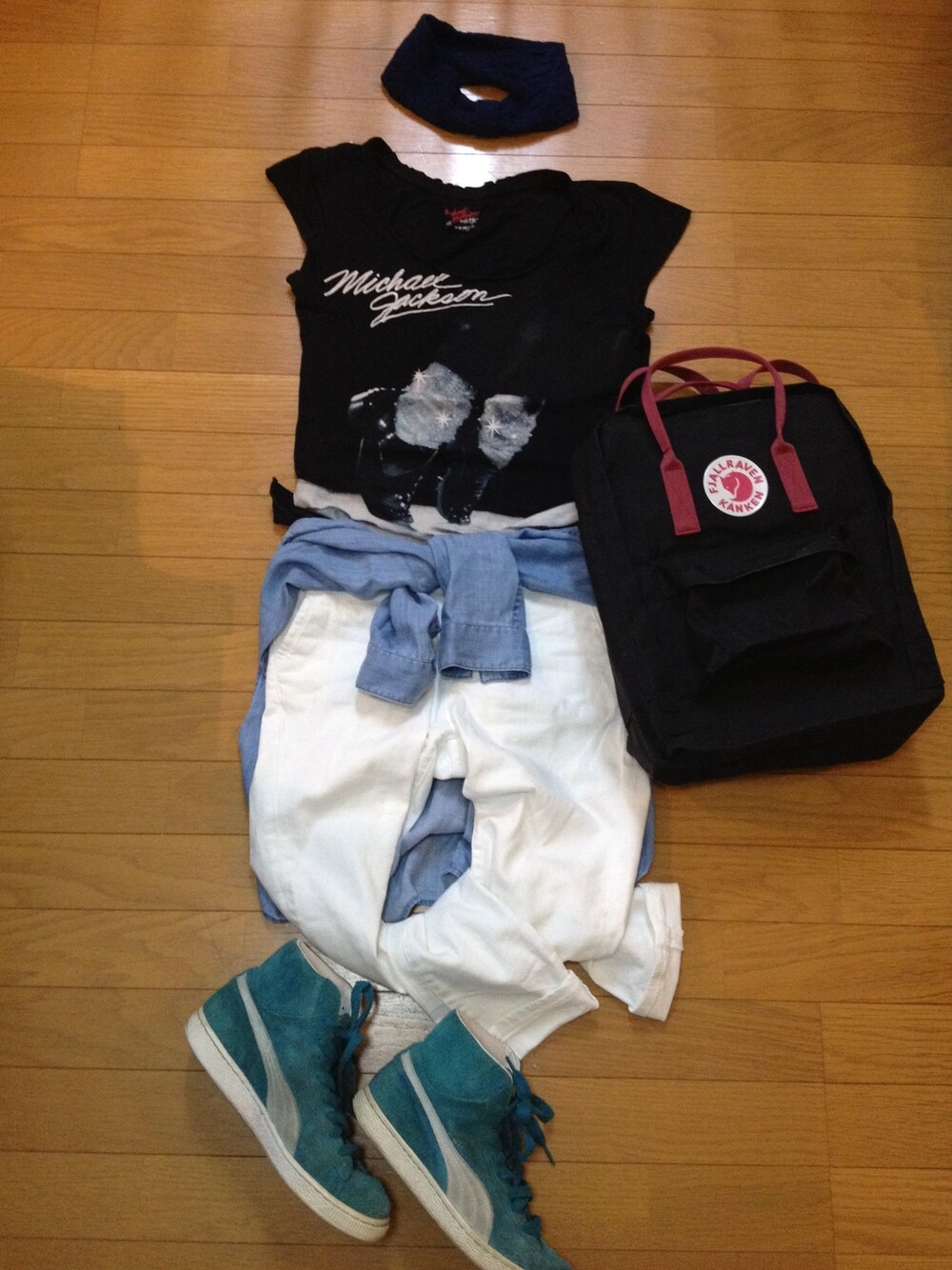 マイケルTシャツ ZARA 着すぎてクタクタのお気に入りTシャツを今時アイテムで、なんとかごまかすコーデです(笑)