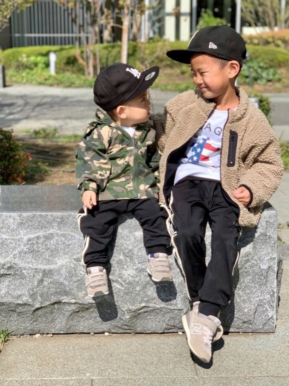 ご覧頂きありがとうございます🙂 兄弟でdevirockのライントラックパンツコーデです! 兄コーデ 6y/110cm/17kg 弟コーデ 1y2m/70cm/9kg