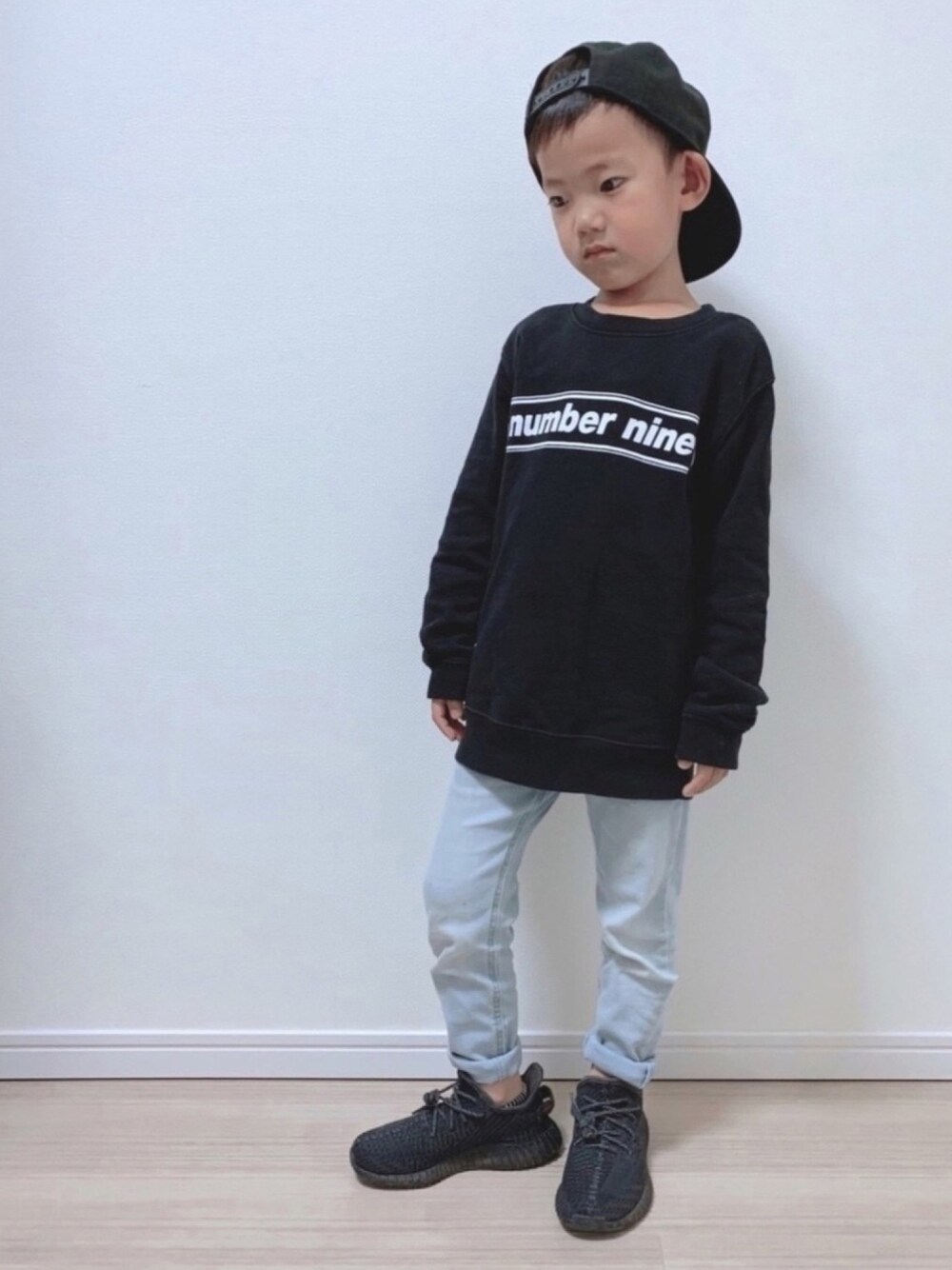 ご覧頂きありがとうございます🙂 ナンバーナインのスウェットは130cmのオーバーサイズ。 YEEZY 350 V2をかっこよく履きこなせるようになりたいです。 本日の恐竜はドラコレックスみたいです🦖 どんどんマニアックになっています😅 兄コーデ 6y/110cm/17kg